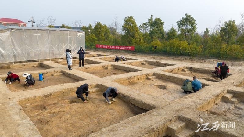 1月3日,工作人员正在九江荞麦岭遗址群岭头上遗址考古发掘现场作业。根据“考古中国”重大研究项目——长江中游文明进程研究项目(夏商周时期)工作部署,经国家文物局批准,九江荞麦岭遗址群岭头上遗址考古发掘工作如期开展。荞麦岭遗址群岭头上遗址2022年度发掘区域位于岭头上遗址中部,布5×5米标准探方20个,发掘面积500平方米。目前遗址发现有唐代建筑一组和商代早期青铜冶炼遗物一批。根据最新测年数据显示,岭头上遗址商代地层年代在距今3500年左右,处于商代早期。结合发现的冶炼遗物,说明早商时期岭头上已经存在冶炼活动,是长江中游早期青铜冶炼的重要实证。 特约通讯员 魏东升 摄