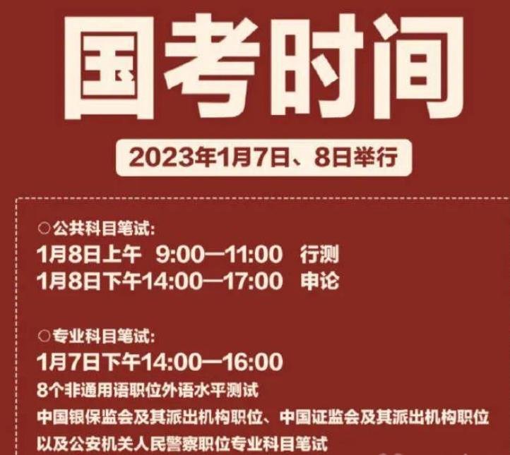 11月底,考务部门宣布,为了保障广大考生的身体健康与生命安全,原计划于2022年12月3日、4日举行的“国考”延期进行,在12月底研究生考试顺利举行后,决定“国考”于2023年1月7日和8日举行。