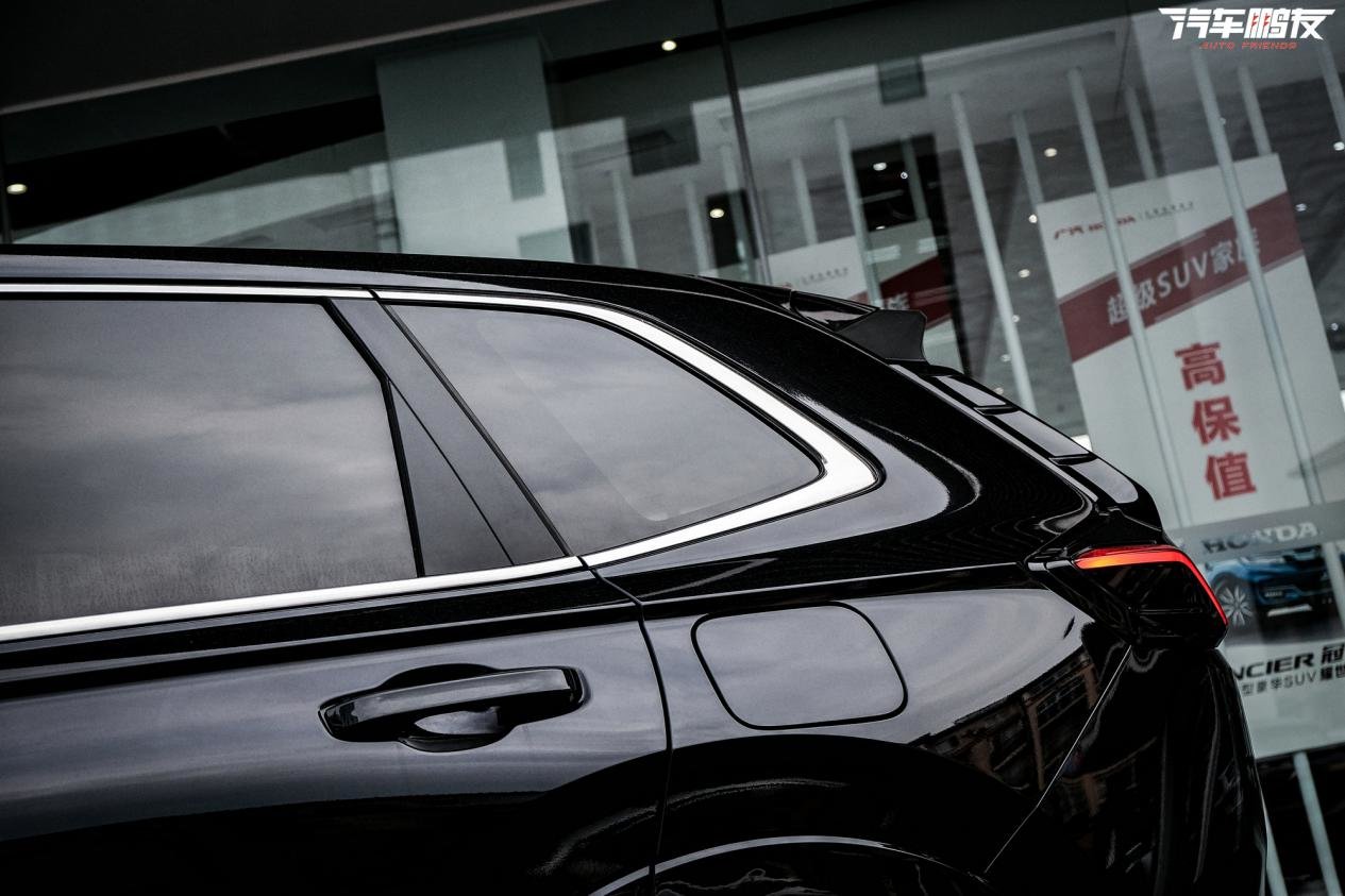 侧面能看出全新皓影与第六代CR-V之间的“亲密关系”,同样是平直简约的车身风格,轮圈造型也完全一样。只不过,全新皓影采用了与车身同色的包围,个人觉得要比第六代CR-V更加美观。此外,实拍车型的18英寸轮圈喷涂成了枪灰色,个人觉得是全新皓影最完美的搭配,甚至比顶配19英寸轮圈更好看。