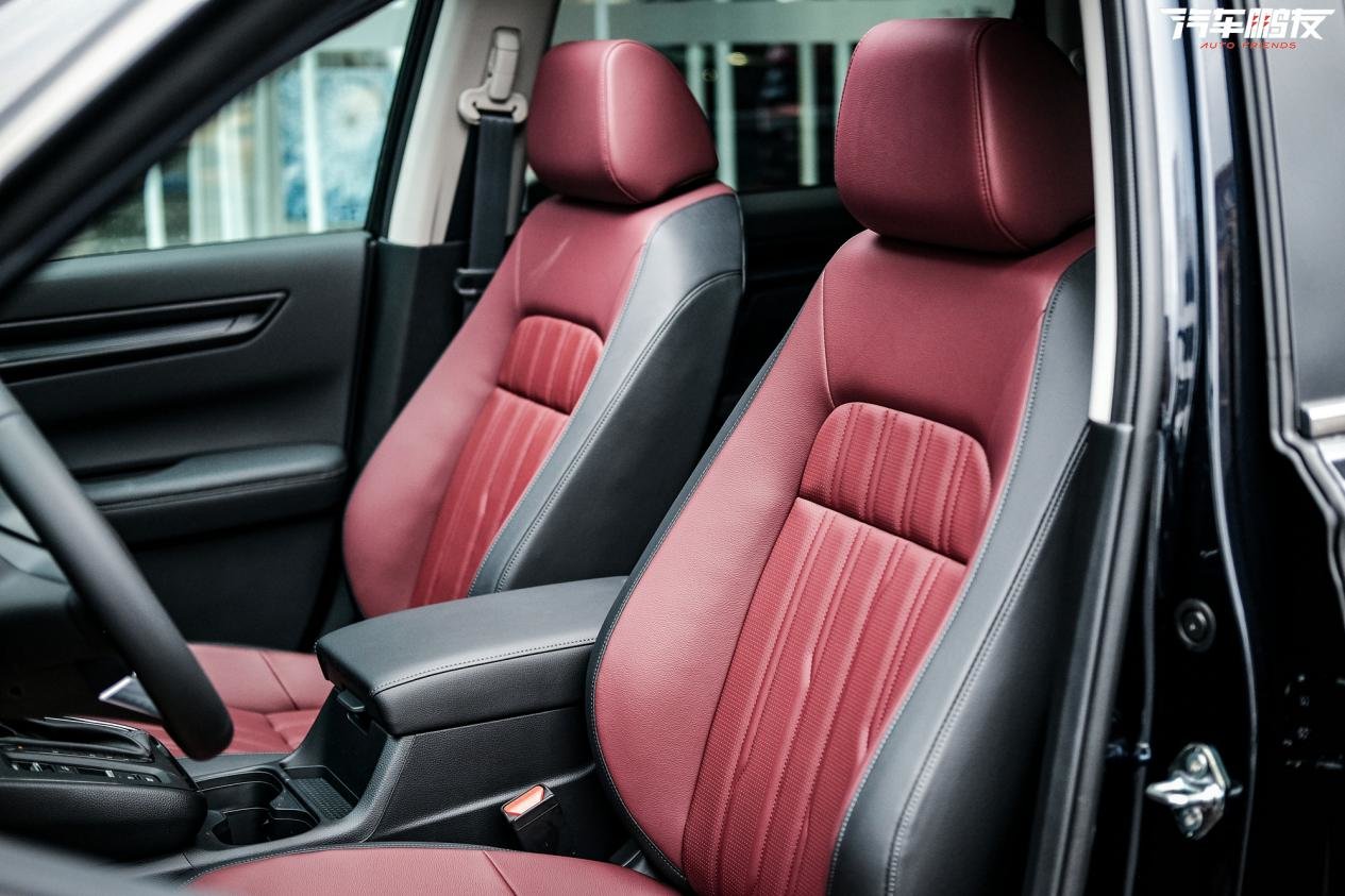 虽然这套内饰设计带有第六代CR-V“家族化”的痕迹,但本田擅长通过颜色的搭配来区分车型定位。全新皓影提供了一套红/黑撞色座椅,这恐怕是表达运动感最简单直接的方式,搭配起来效果的确很棒,极具视觉冲击力。