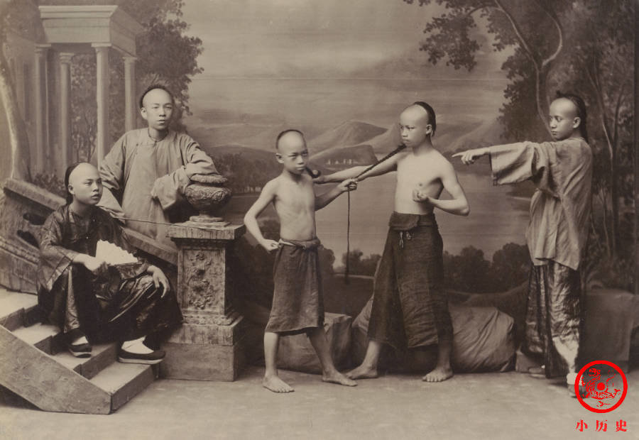 早期摄影因为曝光时间长,拍摄人物时无法实现抓拍,只有摆拍才能得到清晰的影像。晚清时期,摄影师是如何导演拍摄现场的?被拍摄的人是怎么摆造型的?我们通过一组老照片来看个究竟。这些照片是做成相册发行到国外的,所以带有很强的猎奇色彩。