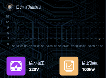对充电桩而言,较高的输出功率表示较短的充电时间。图扑软件 HT 对接电流电压传感器,对充电桩 24 小时日充功率进行实时采集,实现充电桩充电全方位监测。2D 面板实时展示充电桩功率参数,并辅以图扑软件丰富的图标组件,实时展示充电桩功率变化趋势,管理人员可根据需要参考充电站的充电车辆数量、车辆线路运营方案来实现对充电桩数量的科学合理化配置。并根据电动汽车的快慢充时间以及充电功率限制对充电桩功率进行针对性选择。