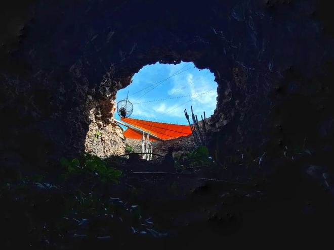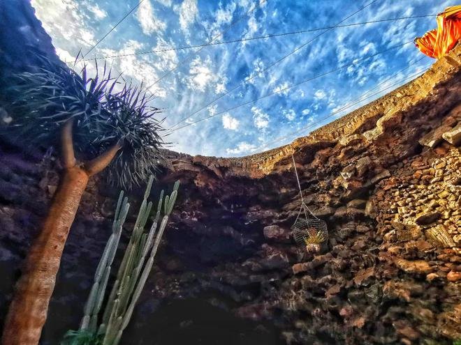 Jameos意为火山顶部坍塌而形成的洞,经过楼梯,你可以往下走进这个火山巨大的肚子里,抬头,天空像一只写满了神谕的眼睛。