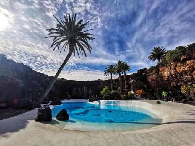 这里还有一个融合了兰萨罗特建筑标志性白色的泳池,据当地朋友说,几十年前池子里甚至还有两只海龟,相对兰萨罗特现在的国际声誉以及人流量,那个泳池早已不够位置,变成了一个美好的景观。