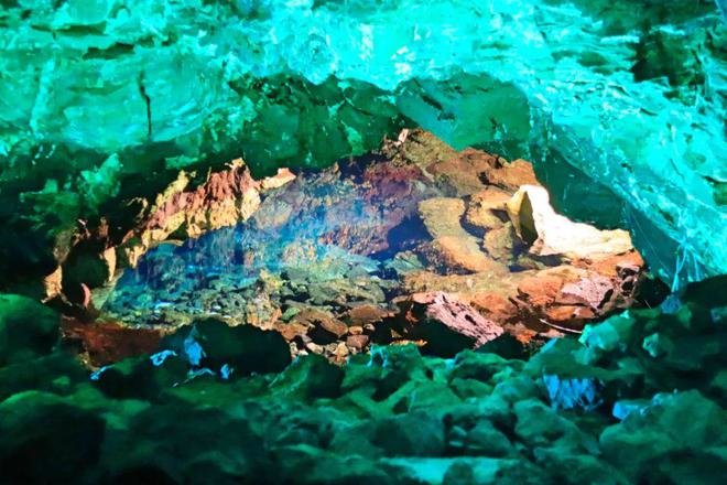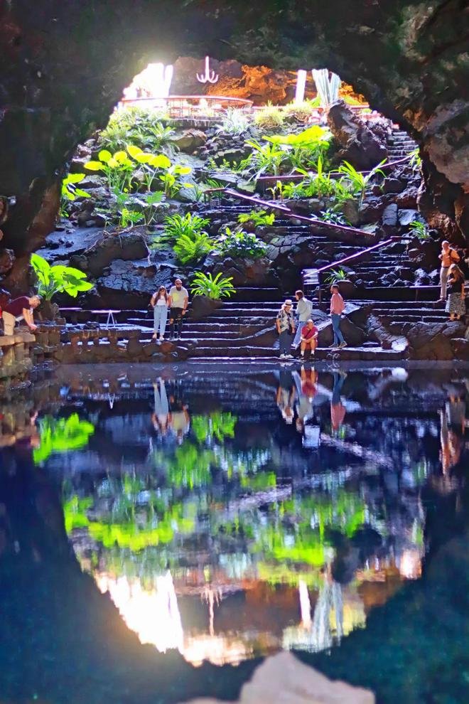 虽说火山洞中的用餐体验已经非常特别,但这只是这个艺术空间的前戏而已,餐厅往下,有一个水深7米的潟湖,这里由于低于海平面,海水倒灌于此而形成。