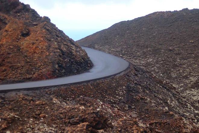 值得一提的是,这条火山之路上,没有任何交通标识,没有中线,没有斑马线,这其实是有违交通法规的,而塞萨尔的发小,当时贵为兰萨罗特总督的佩平,也大手一挥的准了。艺术家希望呈现出,这是在众多火山口中徐徐展开的黑色地毯,引人入胜。