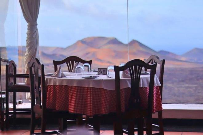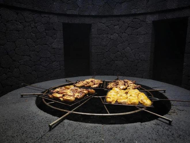 塞萨尔不光是要把自然和艺术结合,更注重旅行体验,他为火山公园的El Diablo餐厅赋予了生机,餐厅的灯,由平底锅锻造,你可以在巨型玻璃窗前,看着火山口用餐。