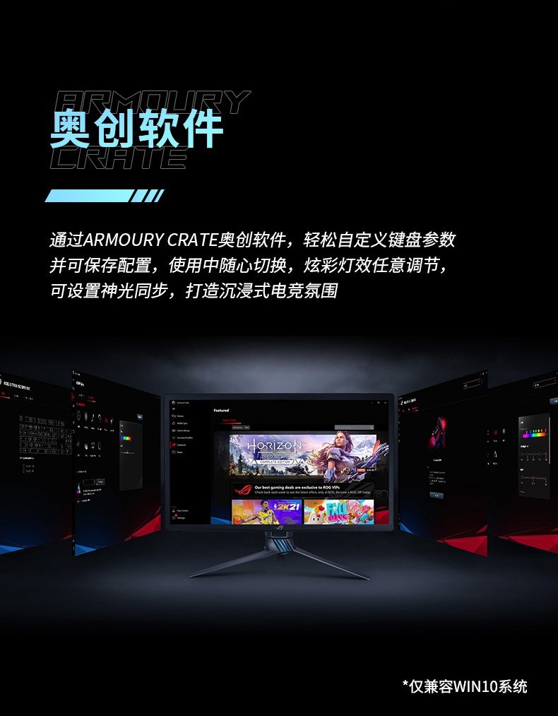 IT之家了解到,你还可以通过 ARMOURY CRATE 奥创软件自定义键盘参数,并可以保存配置,使用中随心切换,炫彩灯效任意调节。