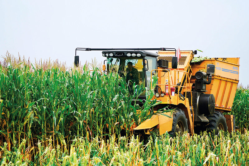 黑龙江省齐齐哈尔市依安县,农机正在收割玉米 魏弘毅摄/本刊