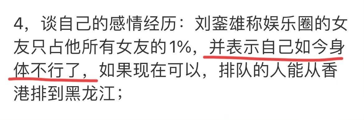 刘銮雄在记者会上说,他当年的女友,娱乐圈女明星只占百分之一都不到,若排队,可以从香港排到黑龙江。