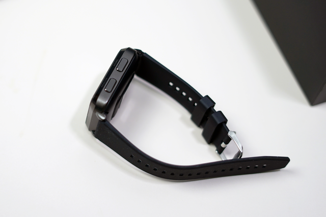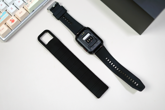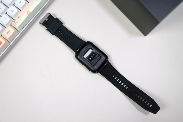 在表盘一侧,则是两颗物理按键,通过这两颗按键则可以完成对开关机、返回、熄屏等操作。而在手表背面,则是各类传感器的以及这次主打的血压气囊接口。