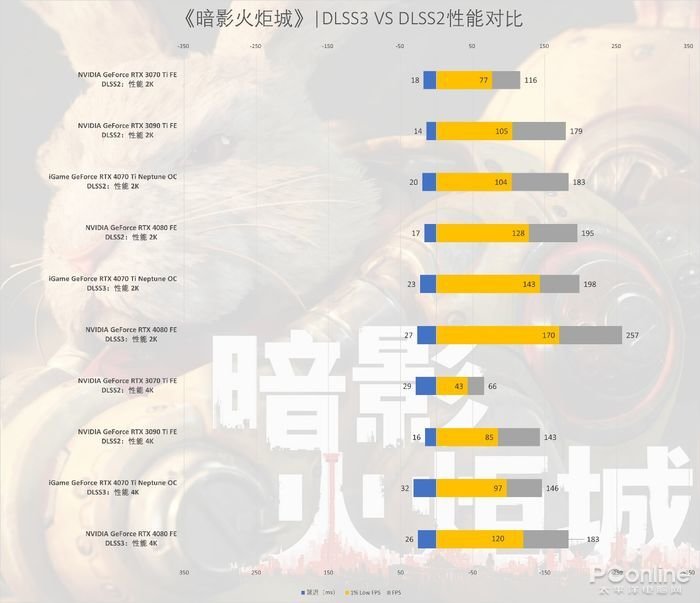 前段时间E宝的圣诞大促期间给每位玩家都赠送了《暗影火炬城》,这是首批支持DLSS 3技术的游戏,得益于它的加持下,显卡性能提升尤其明显,早前我们在测试RTX 4090时就发现开启DLSS 3后,游戏帧率能够直接翻倍,这也让笔者期待中高端显卡在开启DLSS 3后能否与前代卡皇Battle。