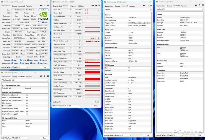 测试前,首先用GPU-Z对显卡的运行状态以规格参数进行检查,避免因为运行状态及参数不正确而导致测试成绩不正确。同时也能通过GPU-Z所呈现的数据来看看iGame GeForce RTX 4070 Ti水神显卡更为详细的规格参数。