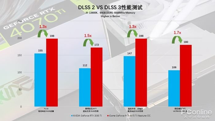 总的来说,正因为iGame GeForce RTX 4070 Ti水神有着强劲的性能,所以它即使只开启DLSS 2,游戏体验已经领先RTX 3090 Ti。如果开启DLSS 3后,那它的帧数提升更为明显,几乎是全方位吊打RTX 3090 Ti,可以说有了DLSS 3这个黑科技,一下子就跟30系显卡拉开了不小的差距。