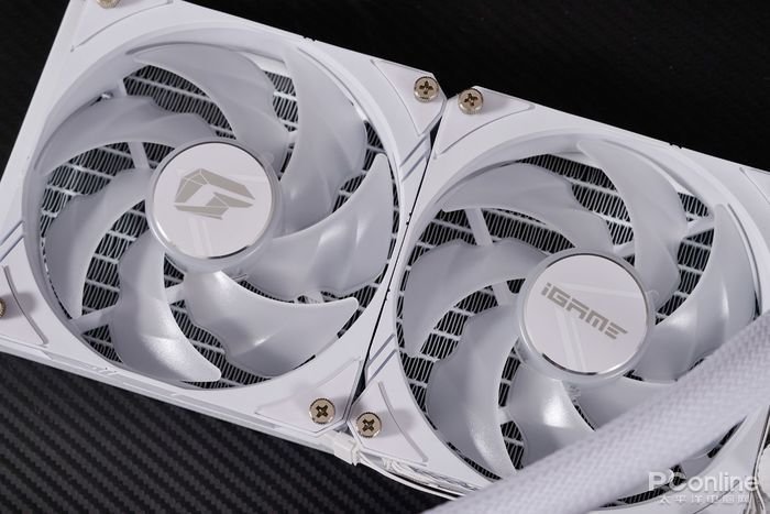 冷排上是2个12025规格的散热风扇,高效降温,让iGame GeForce RTX 4070 Ti 水神能够始终满血释放性能。