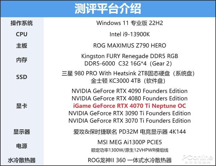 下文“iGame GeForce RTX 4070 Ti Neptune OC”简称为“iGame GeForce RTX 4070 Ti 水神”。