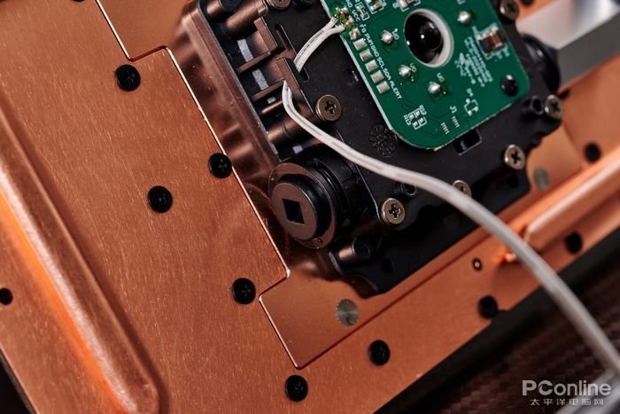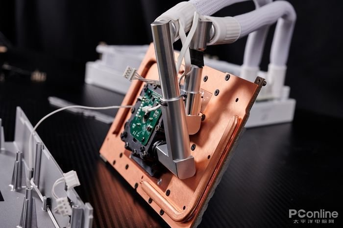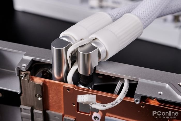 而240冷排内的水冷液则是通过两根水冷管源源不断的输送过来,用来给铜板模块降温。