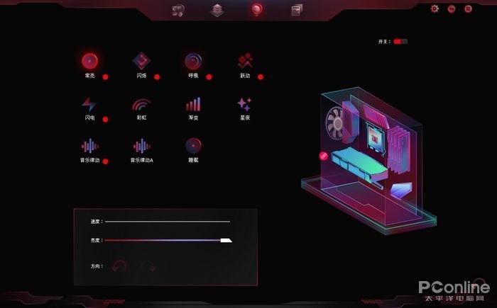 既然是玩灯,那灯效自然是支持自定义的,在官方配套的iGame Center 控制软件中,玩家可以对iGame GeForce RTX 4070 Ti 水神上的灯效进行客制化,并且它们也支持与其他硬件同步灯效。