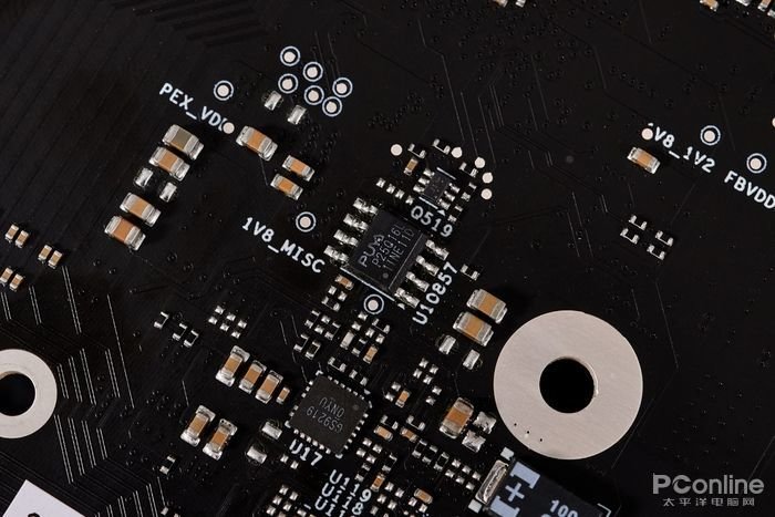 在PCB上还有两颗不起眼的小芯片,它们主要负责控制显卡的双BIOS模式,型号是P25Q16L。
