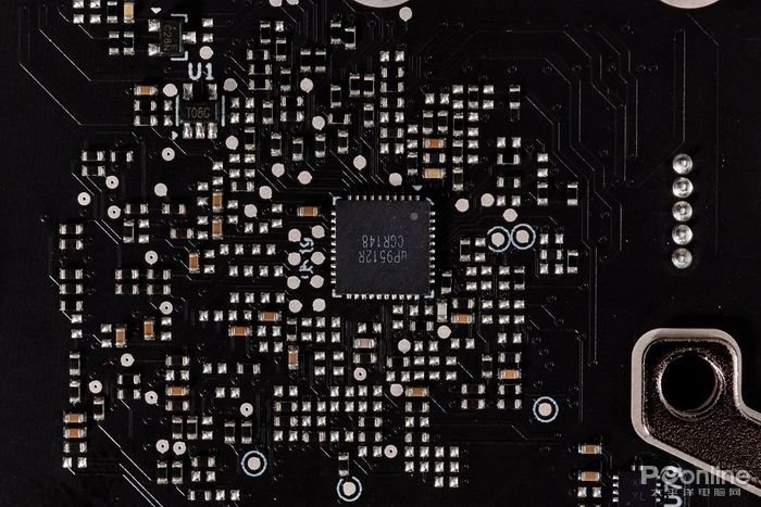 PWM供电芯片则被安排在PCB背面,型号为uP9512R,同时管理核心供电及显存供电。
