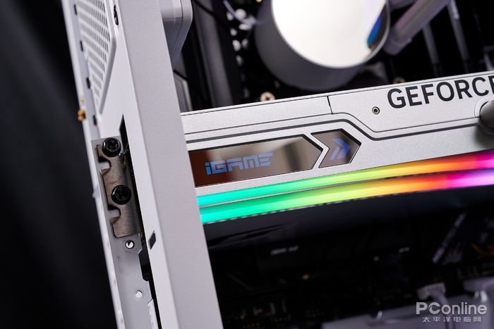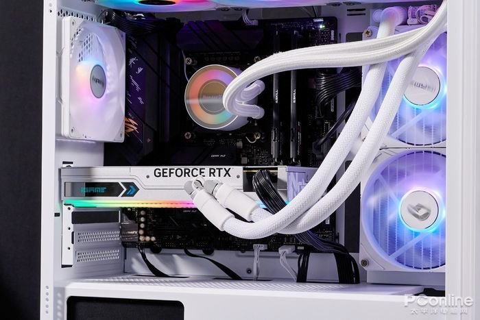 不同于其他显卡动辄三槽起步的厚度,采用240冷排的iGame GeForce RTX 4070 Ti 水神能够将机身做薄,仅仅只有两槽多的厚度,这对小机箱也十分友好。