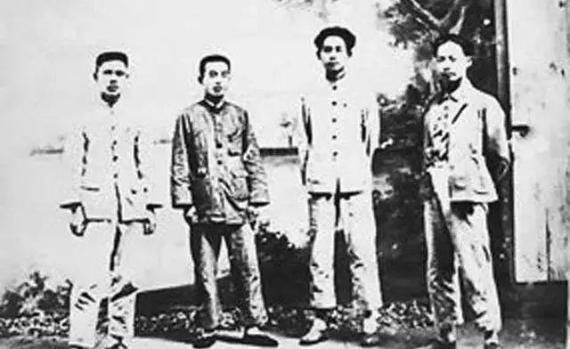 1929年6月19日摄于闽西龙岩城,从右到左分别是陈毅、毛泽东、谭政、朱良才(图片来源于网络)