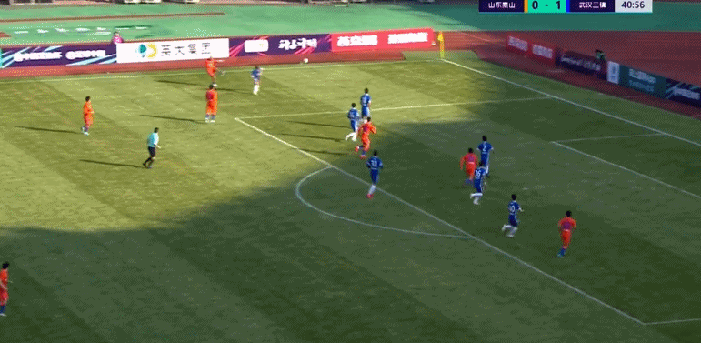 比赛第41分钟,山东泰山队吴兴涵拿球横传到禁区里,宋龙禁区里第一次射门被挡出,随后补射入网,武汉三镇1比1山东泰山。