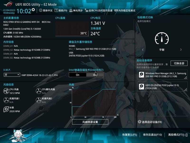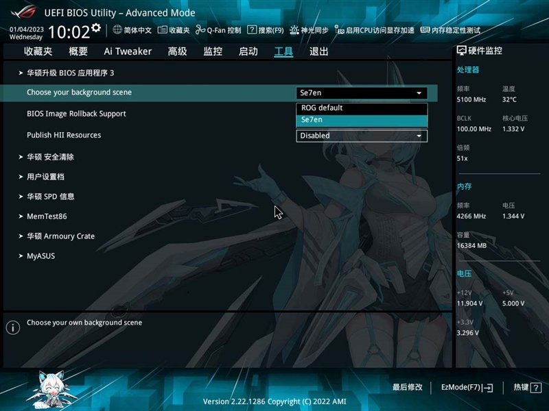 ROG STRIX B760-G GAMING WIFI D4小吹雪主板还可以选择吹雪版本界面,带来浓浓的二次元气息。