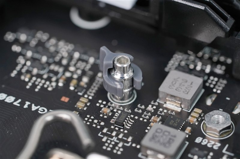 用于安装M.2 SSD的便捷卡扣,无需螺丝,只需轻轻一扭就能将其固定,非常方便。