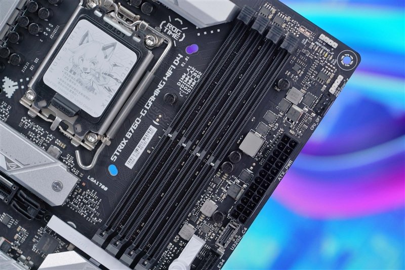 ROG STRIX B760-G GAMING WIFI D4小吹雪主板上有4个DDR4内存插槽,最大支持128GB,支持双通道,最大可超频至5333MHz。