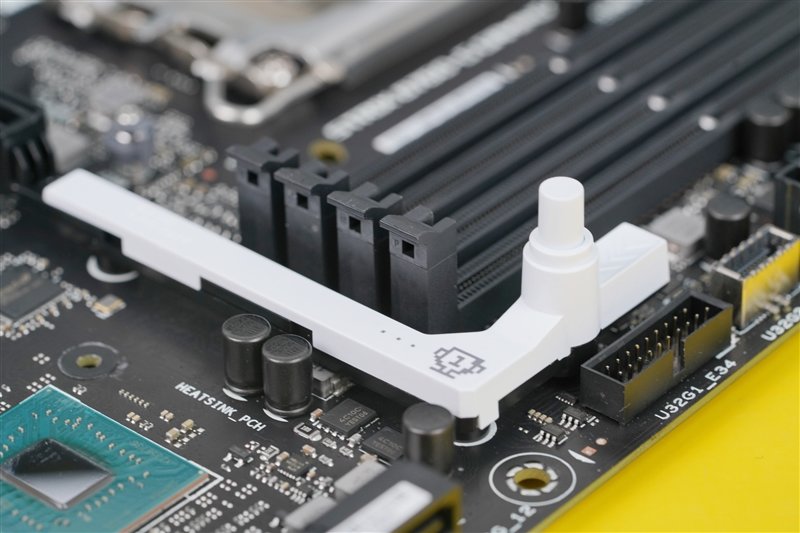 其中PCIe 5.0 X16插槽带有金属防护罩,可避免由于显卡过重导致的插槽撕裂或脱落。