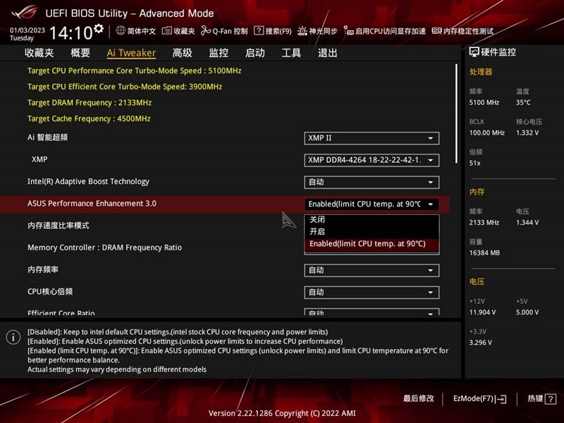 2、ASUS Performance Enhancement 3.0开启限制90摄氏度