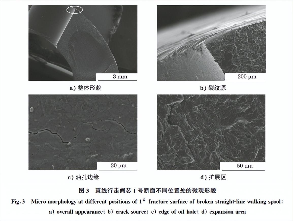 (2)造成直线行走阀芯发生早期断裂的主要因 素包括边缘棱角效应、表面打磨损伤和渗碳不良。
