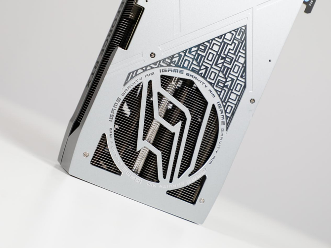 七彩虹iGame GeForce RTX 4070 Ti Advanced OC的背板采用了全金属材质设计,并且在尾部有做镂空,镂空为“iGame”的品牌标识,能够更进一步提升整块显卡的散热和辨识度,颜值非常高。
