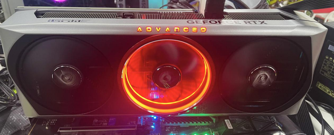 外观设计方面,显卡整体采用了Advanced家族系列的风格设计,中间大红圈非常吸睛,由上代的能量核心进化为“引力之环”,灵感源于宇宙神秘天体黑洞。同时显卡的正面用了更多的直角,配合上合理的弧线,让显卡看上去更加地硬朗,继承了30系列显卡的硬朗风格。