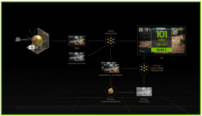 DLSS 3.0技术相对于DLSS 2.0提升明显,如果DLSS 2.0是通过计算出当前画面的部分像素进行,那么DLSS 3.0则是通过强大的算力同时将下一帧的画面也同时计算出来,这样的性能提升放在实际的游戏当中是非常明显的,根据官方给出的说法,全新的DLSS 3.0能够带来2-4倍的游戏性能提升,让我们在4K游戏上获得更为丝滑的游戏体验,另外这项技术让8K光追游戏不再成为奢望,逐步变为现实。