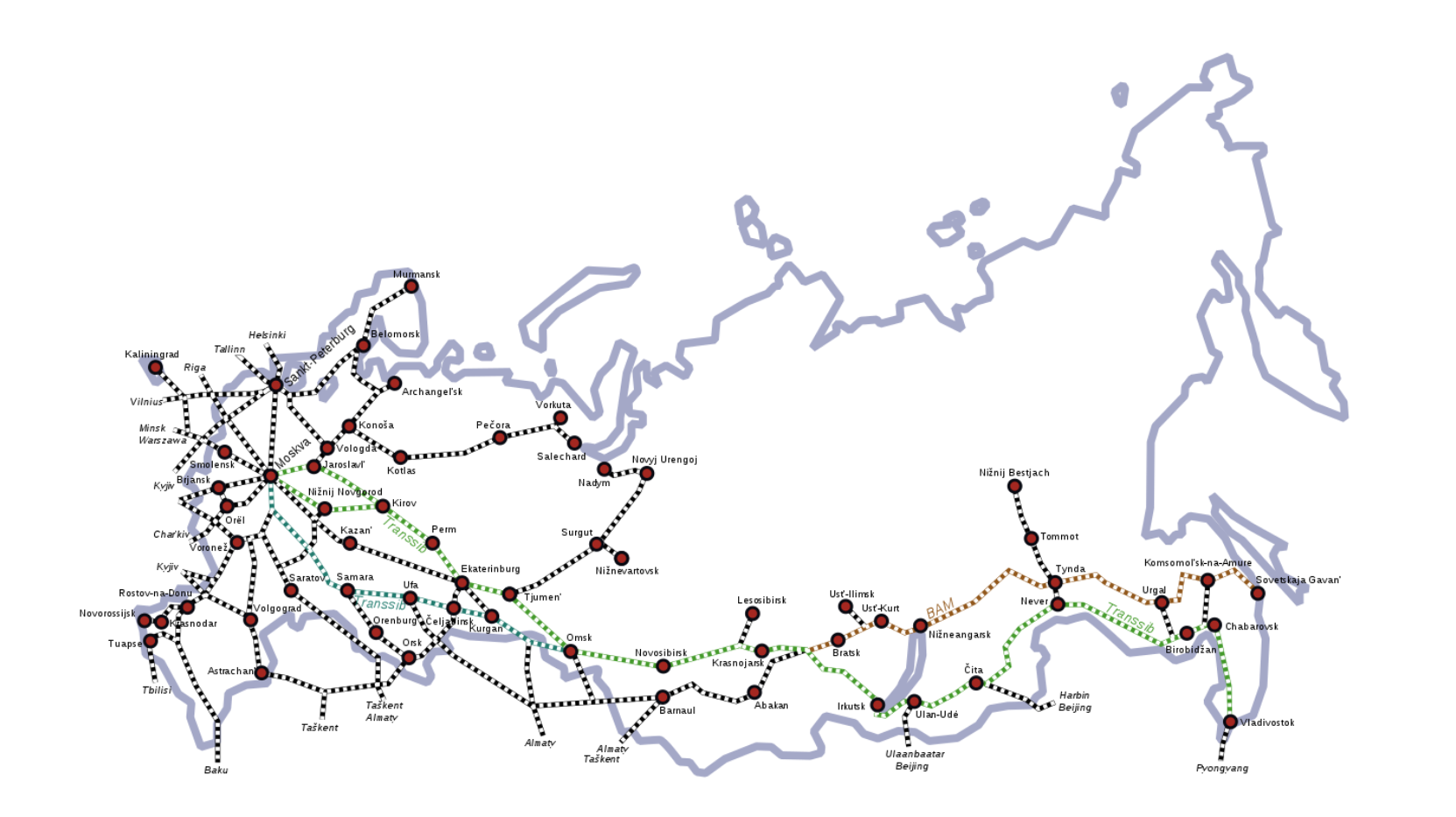 俄罗斯的土地辽阔,但是其核心地带在欧洲那400万平方公里,人口也主要是集中在这些地方。东边1300万平方公里的土地,属于是没人的地方。看一眼俄罗斯的铁路网、公路网,都是集中在欧洲,以莫斯科为中心,西伯利亚就一条大铁路加点分支。