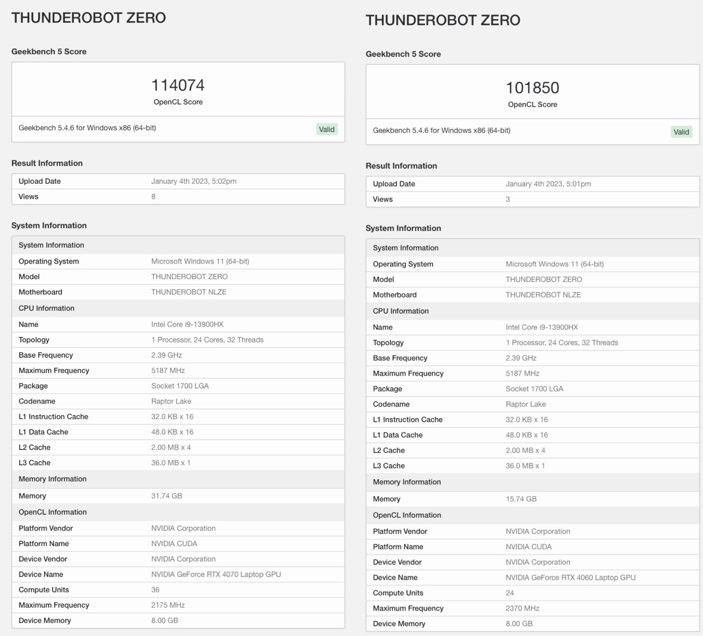 IT之家 1 月 4 日消息,英伟达新发布的 RTX 4060 和 RTX 4070 笔记本 GPU 跑分现已出现在 Geekbench 上。