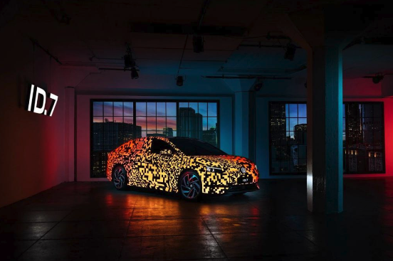 【EV视界报道】近日,在拉斯维加斯举办的 CES 展会上,大众将通过特殊方式展示 ID.7 的智能化特性。伪装车展现出由独特涂层带来的数字化设计效果,使得 ID.7 可通过光影带来更多互动体验。车身覆盖 40 层涂层,一些涂层区域具有导电性,而另一些则可以绝缘。车身共有 22 个可独立控制的发光区域,通过 " 电发光涂层 " 技术可在最外层下实现通电,并点亮该区域。如果这些涂层外接到音响系统,音乐的韵律节奏还可通过车身发光效果展现出来。新车基于大众MEB平台打造,是ID.AERO的量产版,定位纯电中型轿车,将在中国、欧洲和北美开启销售。