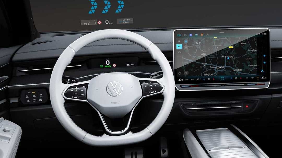 内饰方面,大众ID.7预计将配备15.0英寸中控屏和AR HUD,同时语音控制系统可通过“你好大众”语音唤醒,进而控制基本功能。