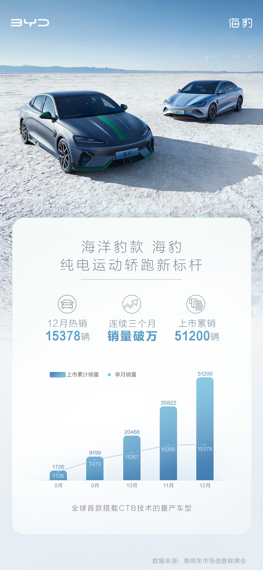 哦不!确切地说应该是“杀红了眼”——比亚迪海豹10月热销11267台、11月热销15356台、12月热销15378台,实现连续3个月销量破万,2022年年度销量共51200台,当中11月的销量成绩为中国品牌中型车第一,新能源中型车第一,07月上市,11月登顶,对于半路杀出的海豹,大家多半应该是带有不解的:这款聚焦年轻用户群体的纯电动车,是如何在短短时间内便“征服”他们的?这就不得不从海豹对他们需求的洞察和回应说起了。