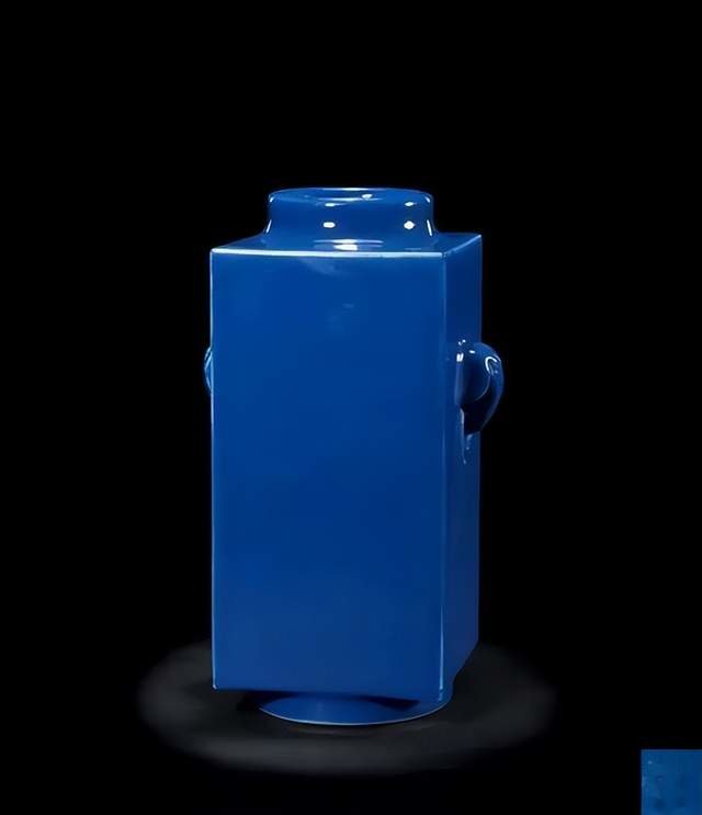 清乾隆 茶叶末釉绶带如意耳葫芦尊(1947万) H 18.1cm「大清乾隆年制」款,2019香港保利秋拍祭蓝:在色调上鲜艳发亮,釉色不流淌,无纹理,呈色稳定(注:是从天蓝釉的基础上创新出来的,因为釉色积淀深沉,又叫“积蓝”)。清代著名瓷釉在祭蓝釉烧成的瓷器上,用金水描绘各种花卉图案再经红炉焙烧,形成“祭蓝描金彩”(注:这是釉下和釉上综合装饰手法,金线耀眼,相得益彰)。祭兰以钴为着色剂,配以釉果、长石,以钙、镁做助溶剂。在生坯上施釉,以1280℃至1320℃温度烧成。