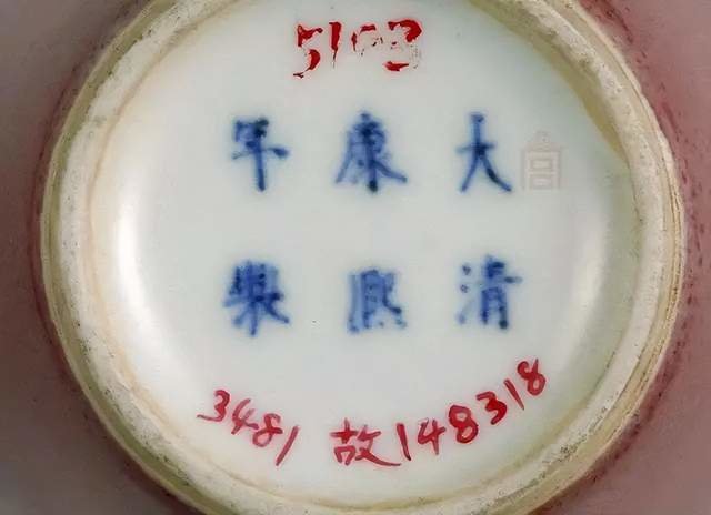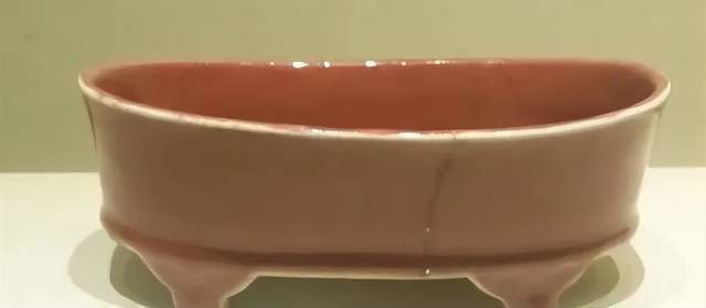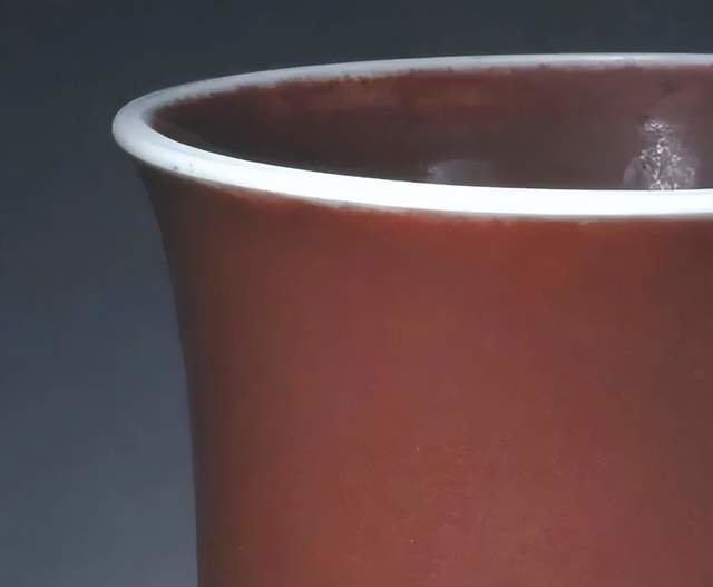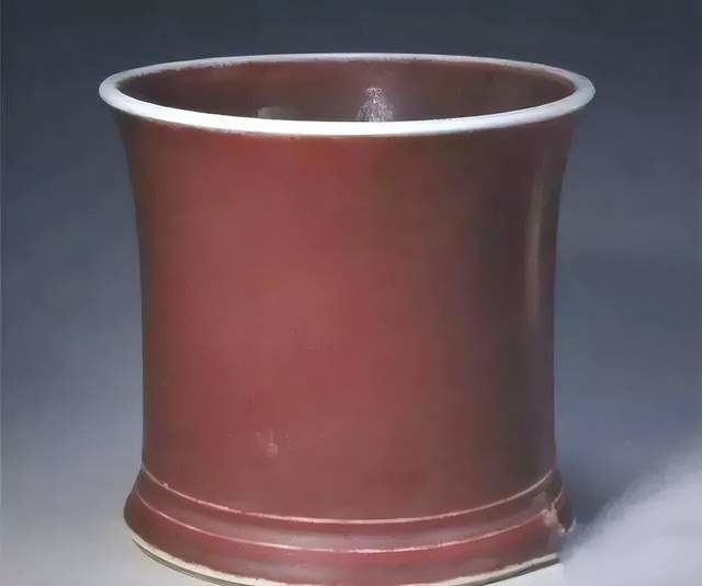 祭红:是明代宣德朝成功创新的著名瓷釉(注:由于当时烧造这种红色釉是为了装饰大明皇权的祭器,其他任何器皿上都不被允许使用,是皇权唯一可以使用的瓷釉,所以被叫做“祭红”)。在色调上深沉安定,不脱口,无浮光也没有流淌现象,口底有都有灯芯边——这个“灯芯边”在鲜红釉面的衬托之下显得轻松舒缓。(注:清《历代名瓷图谱》中对祭红的说明文字:……祭红,其色艳若朱霞,真万代名瓷之首冠也)