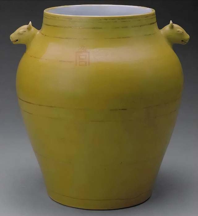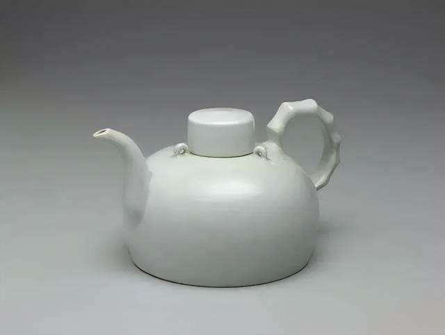 明 永乐 甜白三系竹节把壶浇黄釉:在色调上黄润光滑,如葵花初开之色。明代宣德年间景德镇著名瓷釉。多用于刻有花纹的瓷胎,黄色纯正且透明性强,刻画的花纹清晰可见。也称“娇黄釉”。浇黄釉属“铁系釉”,以铁中的赭色为着色剂,在生坯上施釉适合厚度为1至2毫米,烧成温度为1250℃至1280℃(注:在素烧坯上施浇黄釉900℃左右的温度在红炉亦可烧成)。