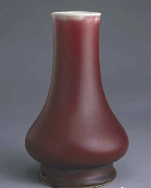 清康熙郎窑红釉穿带直口瓶-北京故宫藏乌金釉:在色调上乌黑如漆、光泽发亮。我国名贵高温色釉之一。清代康乾年间景德镇著名瓷釉(注:乌金釉是在定窑和建窑的瓷釉基础上创新得出的,同时得益于产于景德镇本土的乌金土,这种土含铁量在13.4%,色泽纯正)。乌金釉属“铁系釉”。在生坯上施釉1至1.5毫米,以1250℃左右温度烧成。