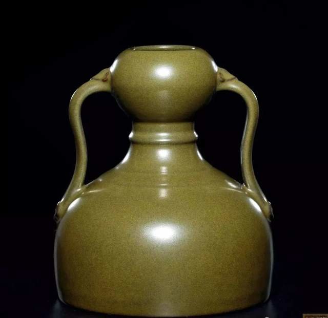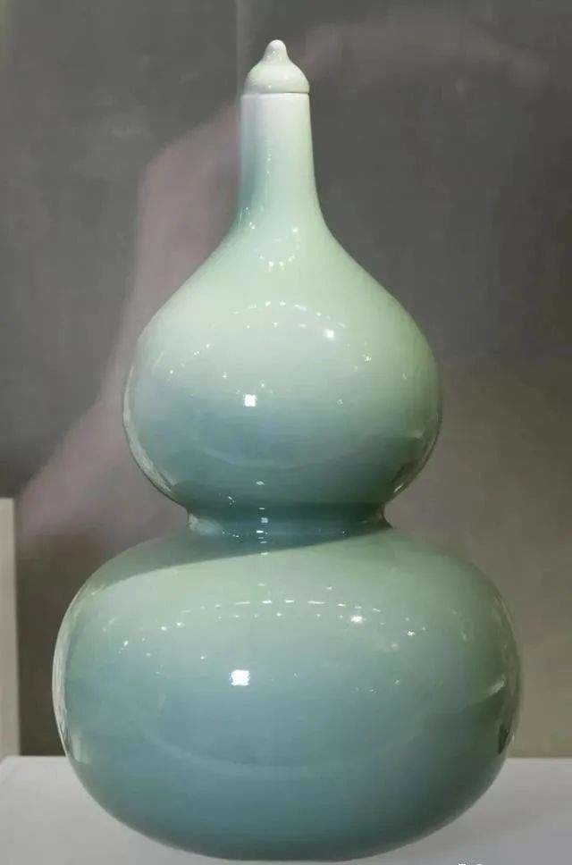 清乾隆 冬青釉带盖葫芦瓷瓶,南京博物院藏茶叶末:是由督陶官唐英研制官釉时新创的,最开始分为“鳝鱼黄”、“皮绿”和“黄斑点”三种单独色釉,后整合出在色调上呈暗绿色,又散布着暗黄色星点的一种瓷釉,看上去像茶叶细末,被叫做“茶叶末”(注:茶叶末釉面呈亚光状态,一般研磨的颗粒较粗,故意保留较大颗粒的铁、镁与硅酸化合物,可使暗黄色星点形成机理,从而产生结晶)。茶叶末是清雍正朝景德镇著名瓷釉。茶叶末属“铁系釉”。在生坯上施釉1毫米左右,以1250℃至1280℃温度烧成。