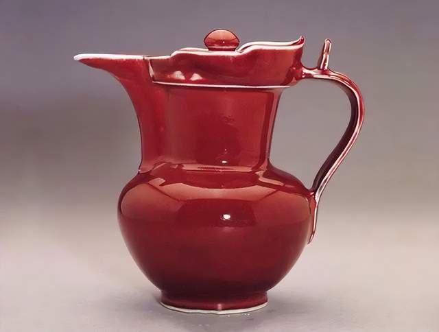 明宣德 《宝石红僧帽壶》明宣德 《宝石红僧帽壶》景德镇方言中“祭”和“醉”发音一样,所以又把祭红叫做“醉红”,同样因为方言的原因。还有把祭红叫做“极红”或者“鸡红”(注:又由于这种红色釉湿润温和,镇民们又把祭红称作“霁红”;)。明代晚期,祭红开始被允许在其它器皿上进行装饰,但是祭红釉对烧成条件的敏感性极大,因此成品率极低,成功烧造之后身价高。(注:历史上历代官窑在配置祭红釉时,都不惜工本,使用珊瑚、玛瑙、寒水石、玉石、珍珠、黄金等,但是极少有成功作品存世)。祭红釉属“铜红系釉”,在生坯上施釉,以1250℃至1320℃的温度烧成