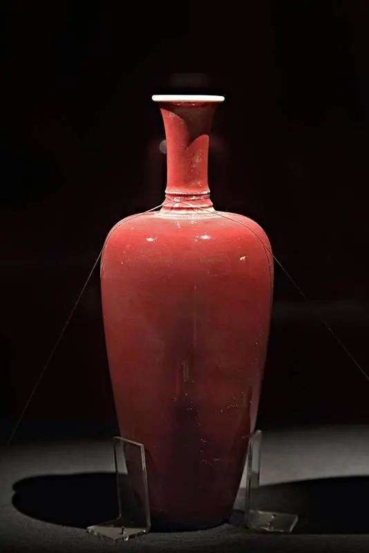 清康熙 豇豆红釉暗花太白尊,台北故宫博物院藏郎红:在色调上发类似于红宝石般的鲜艳红色。清初郎廷极督陶期间景德镇著名瓷釉。又称“宝石红”或“郎窑红”(注:据说郎红釉的形成有偶然性,是在仿明“祭红釉”时因配置误差或者烧成控制不当,阴差阳错烧制出“郎窑红”瓷釉,从配釉、工艺、烧成等情况推测,这种推测有相当的可信度)。郎窑红属“铜红系釉”。郎红釉也是极难控制的瓷釉之一,是容易发生“窑变”的代表性瓷釉之一。在生坯上均匀施釉,以1300℃至1320℃的温度烧成。