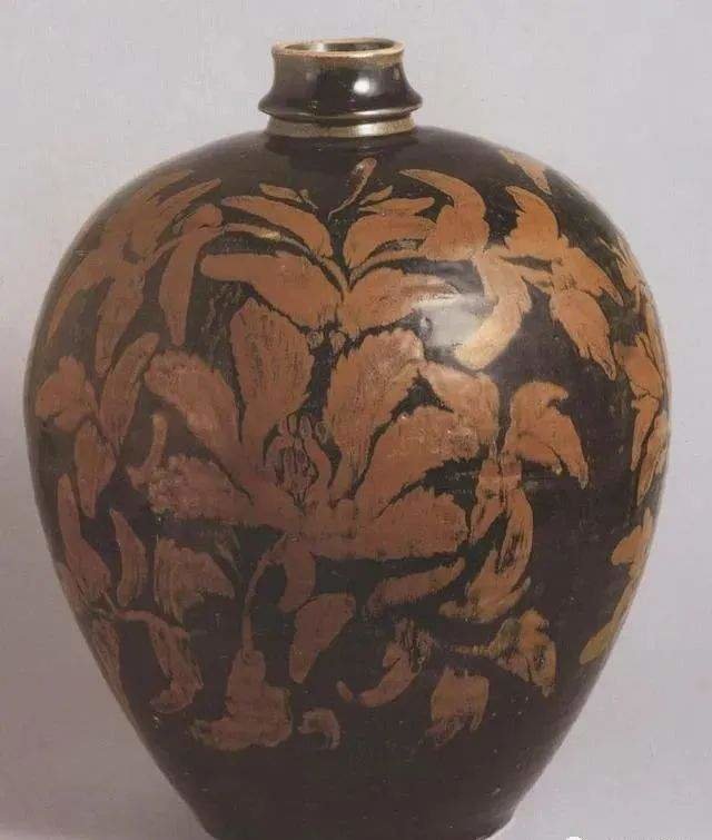 金-元 黑釉铁锈花牡丹纹吐鲁瓶