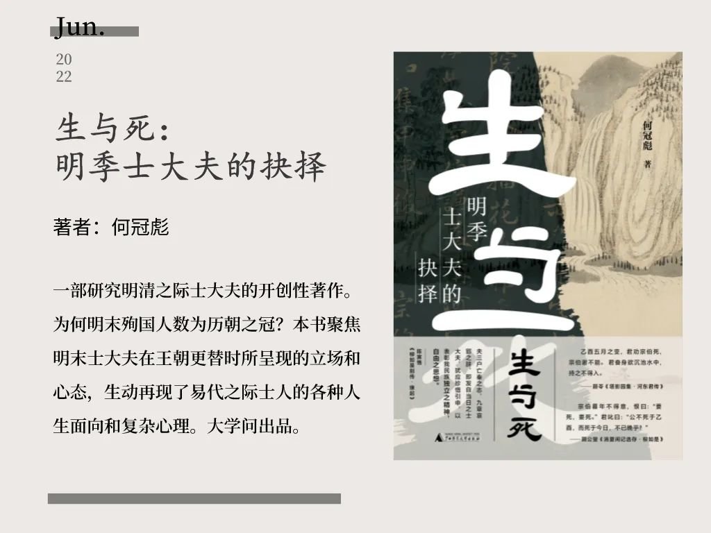 本书聚焦明末士大夫群体在明清王朝更替之际所呈现的立场和心态,特别是他们的殉国表现和生死观念,以及时人对殉国者的评价,生动再现了明清之际士大夫的各种人生面向与复杂心理。